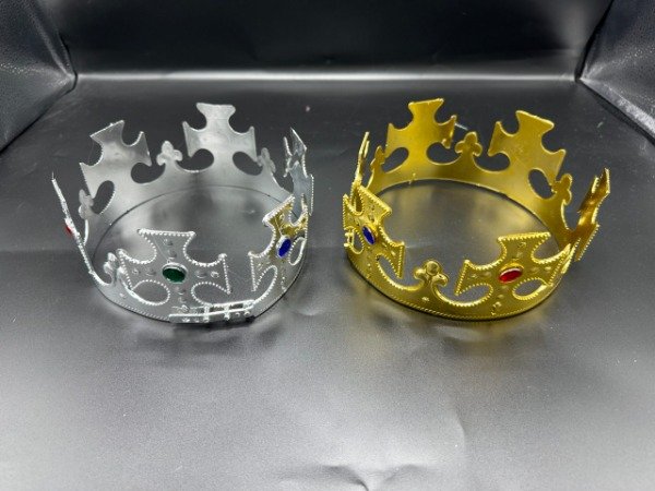 YJ0724 Corona Plástica Rey Cruz Plateada y Dorada 12U